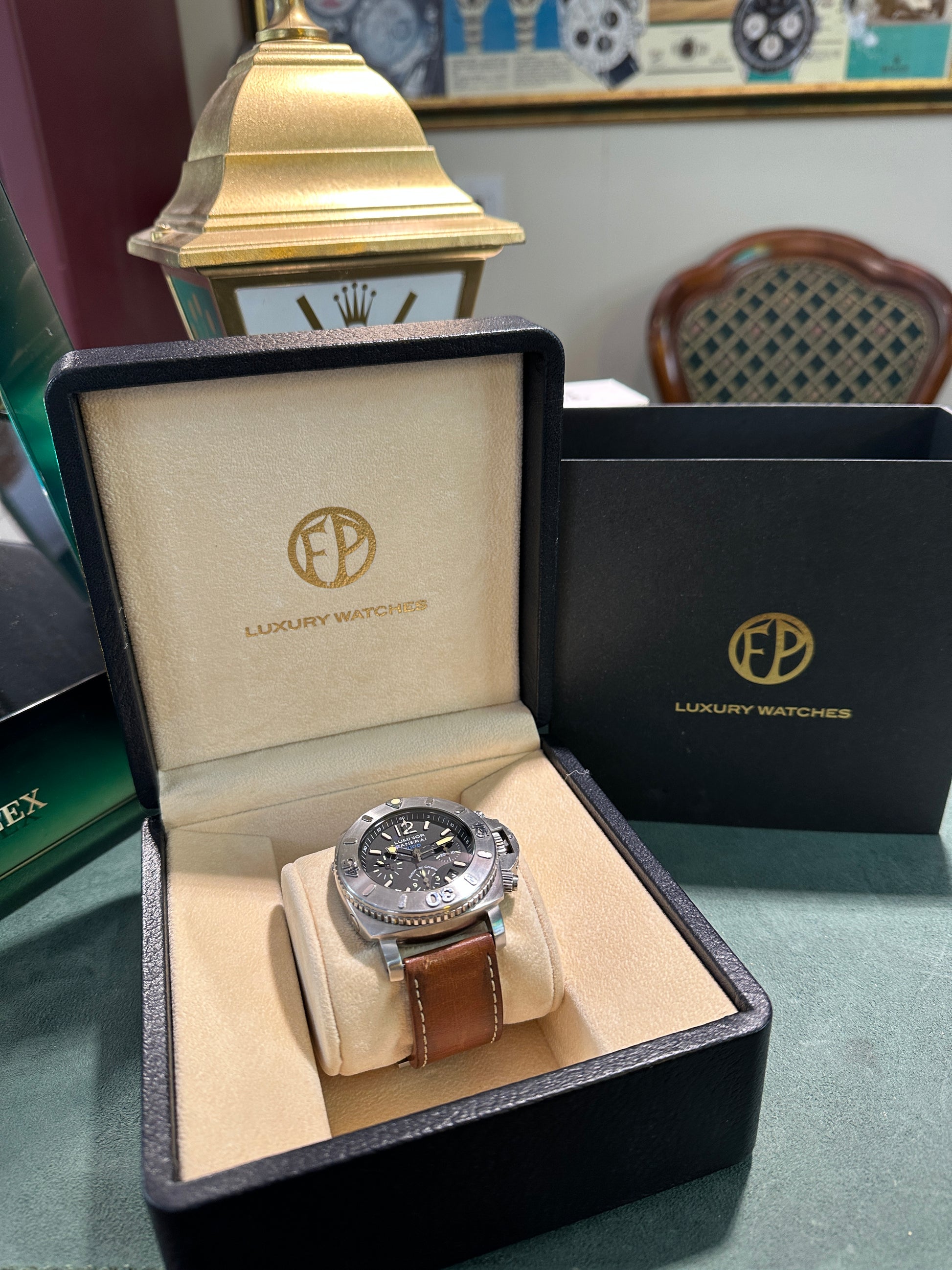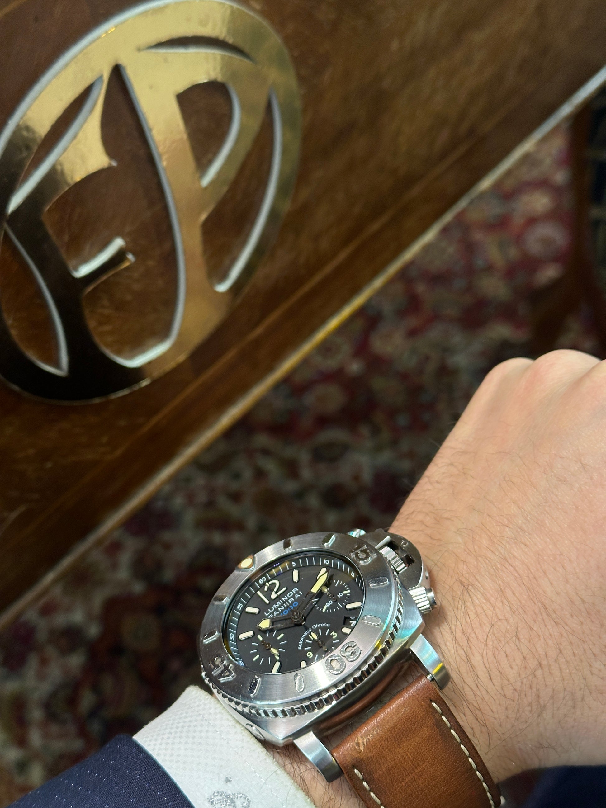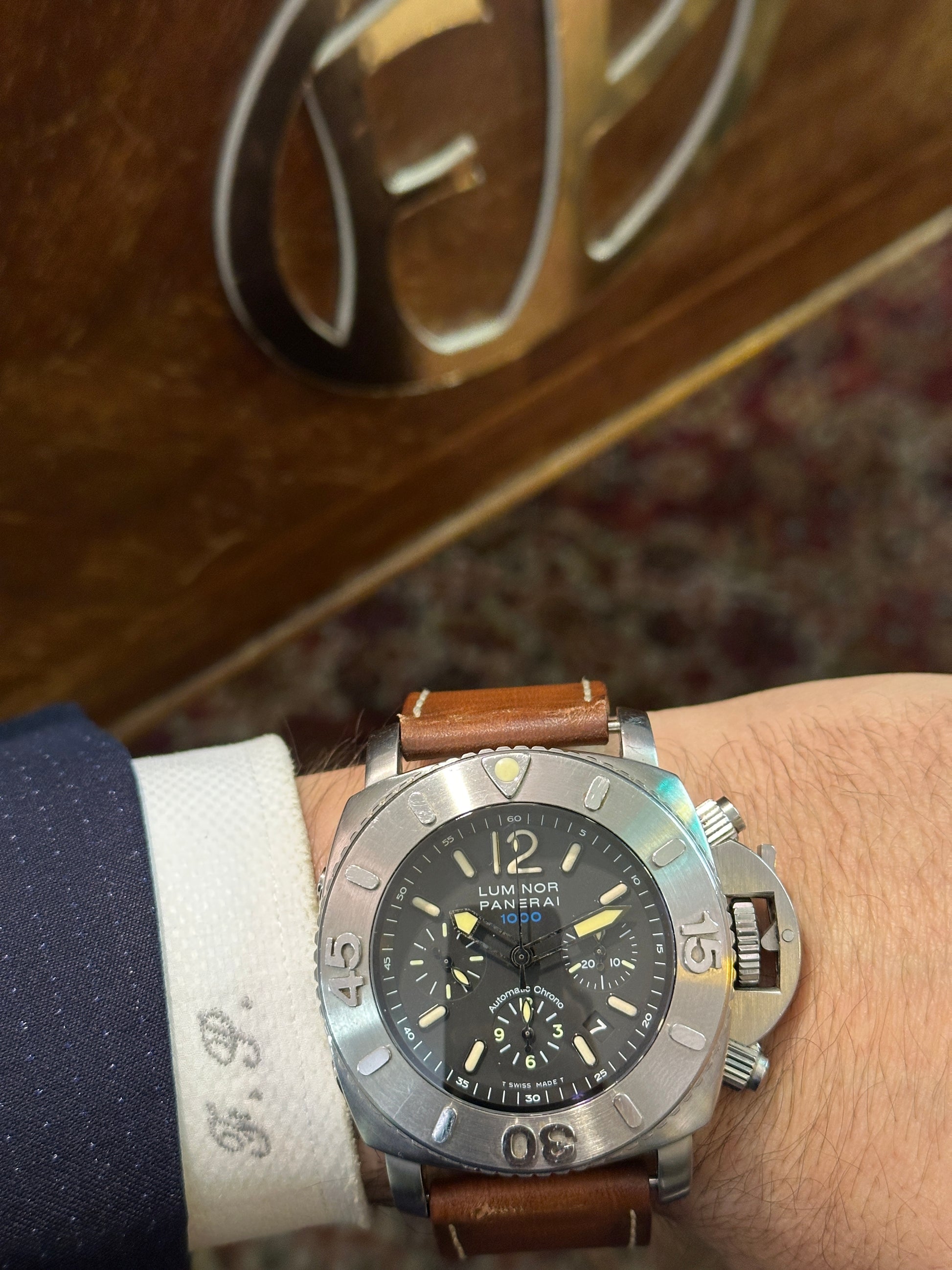 Uno dei panerai più imponenti e professionali. Resiste fino ad una profondità di 1000 metri. Funzione Chronograph, serie limitata. Mai lucidato.