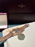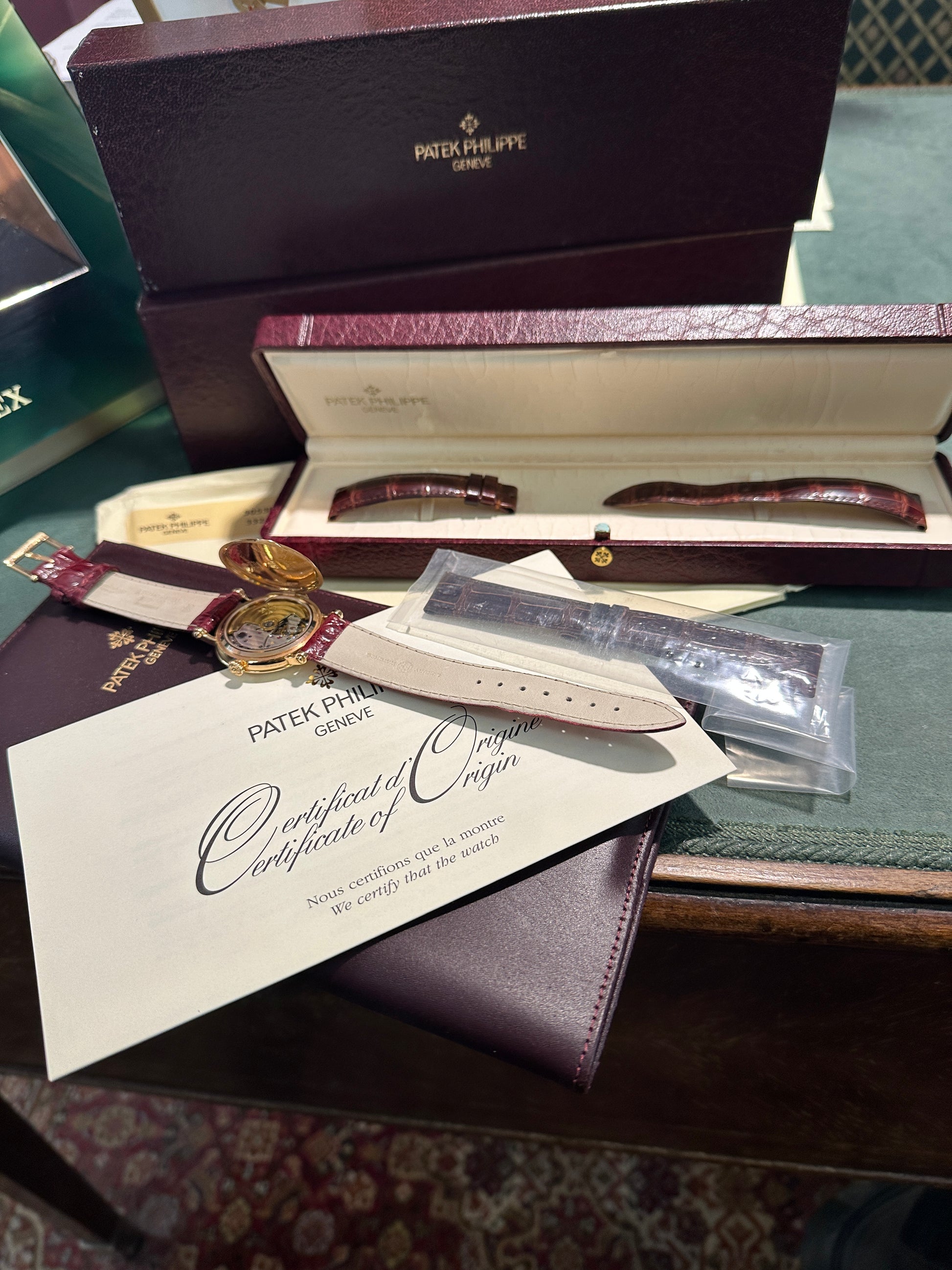 Classe, eleganza e carattere. Questo è ciò che traspare da questo superlativo e raro Calatrava in oro rosa, con numeri BREGUET. Per chi vuole fare o farsi un regalo indimenticabile. Il fondello con meccanismo a vista, con fondello apertura a cerniera è davvero arte pura.