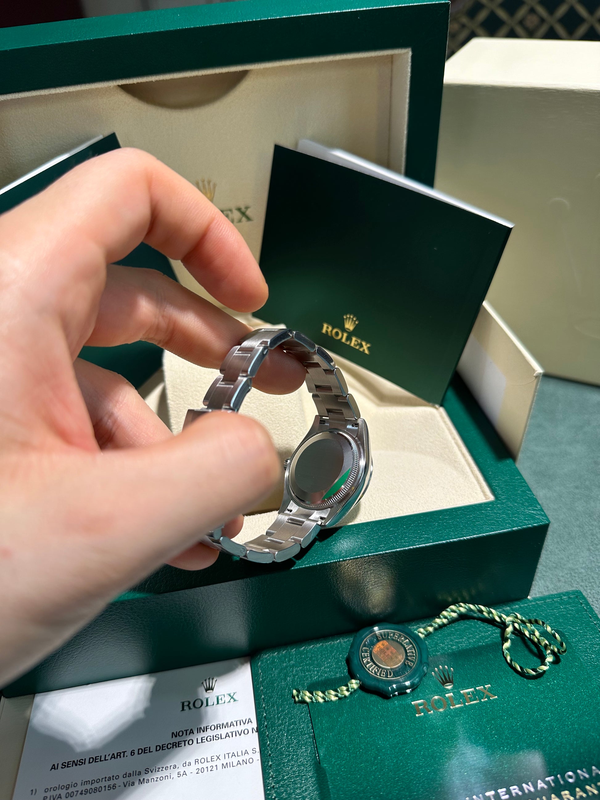 Corredo: Full set, scatola e documenti ufficiali. In garanzia fino a Novembre 2029, valida in tutti i concessionari Rolex del mondo.